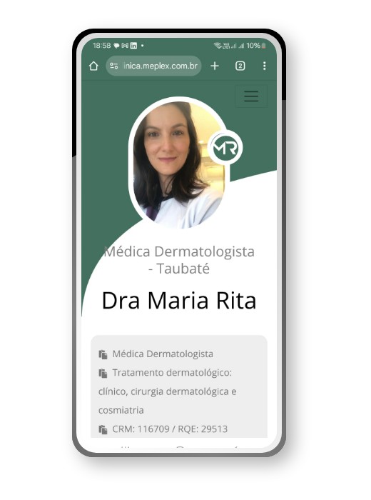 A Dra Maria Rita, dermatologista em Taubaté, tem seu site na plataforma Weplex Comunicação que conta com o suporte especializado do Marcio S Galli para o posicionamento em SEO. Os dados abaixo se referem a coleta do mês de Abril de 2025: